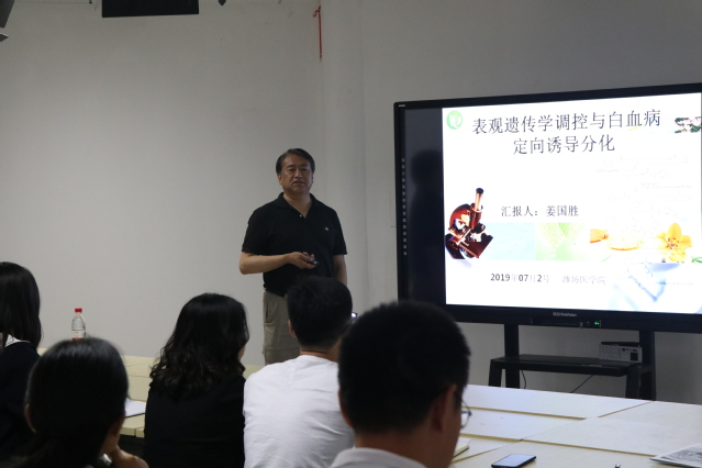 姜国胜研究员做了题为《表观遗传调控与白血病定向诱导分化》的学术报告,就表观遗传调控进行了系统的讲解并分享了PML-RARa在白血病中的研究思路。