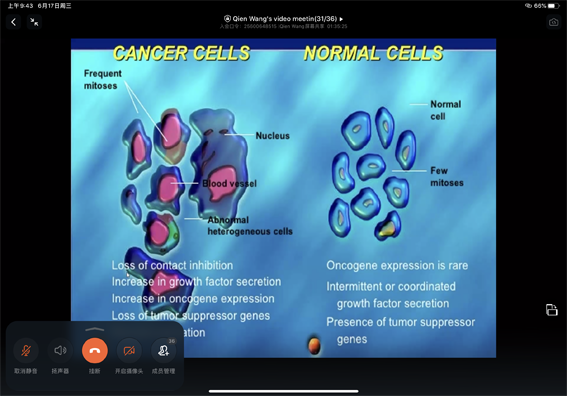 6月17日,生命杏吧原创 承办、美国俄亥俄州立大学终身副教授王起恩主讲的第三期《肿瘤细胞生物学》(Cancer Cell Biology)国际课程精彩开讲。