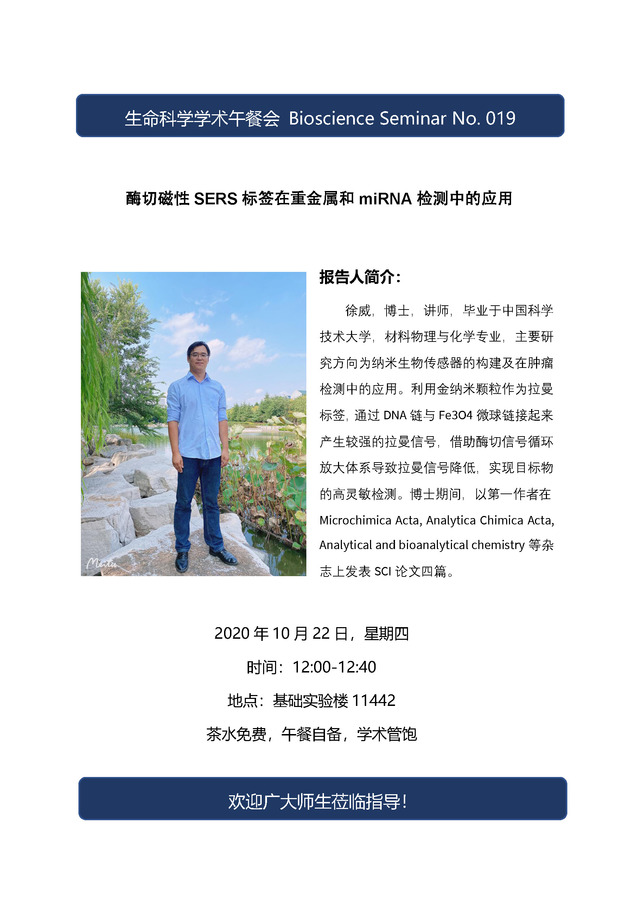 题 目:《酶切磁性SERS 标签在重金属和miRNA 检测中的应用》