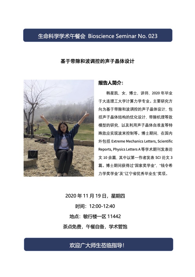 生命科学学术午餐会2020-14期《基于带隙和波调控的声子晶体设计》