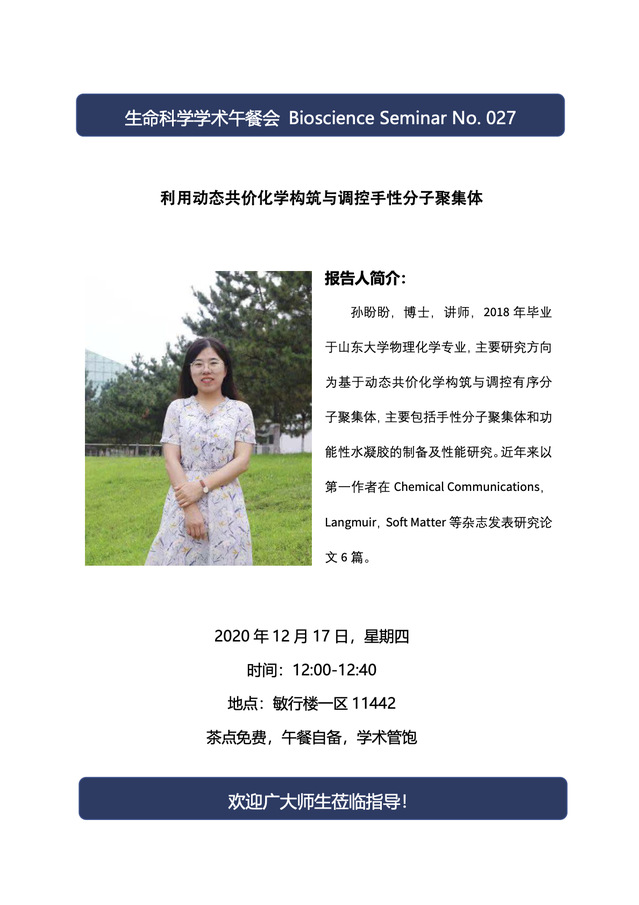 生命科学学术午餐会2020-18期《利用动态共价化学构筑与调控手性分子聚集体》