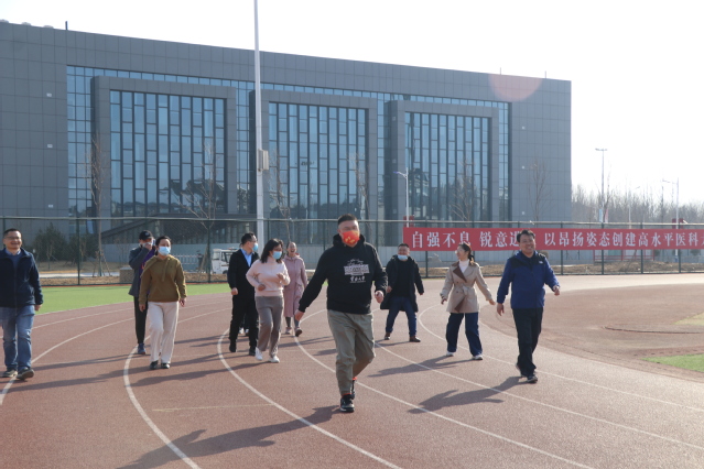 会后,学院全体职工到操场参加了“凝心聚力共发展、巾帼同心展未来”健步行活动。