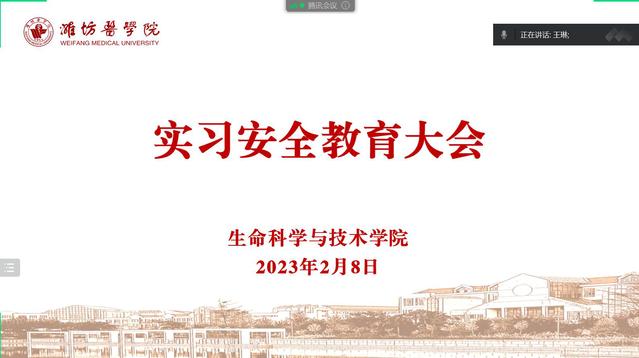 为加强学生实习安全意识,提升实践教学质量,2月8日下午,生命杏吧原创 召开实习年级班会,学院党总支副书记王琳、辅导员以及2023届全体实习生参加会议。