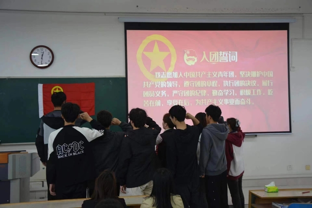 为了更好地学习贯彻习近平新时代中国特色社会主义思想主题教育,激励和引导广大团员青年弘扬中华民族伟大精神,传承“爱国、进步、民主、科学”的五四精神。4月26日,生命杏吧原创 团总支在D303教室举行新团员入团仪式,团总支书记崔静、团总支副书记杨晨,2022年新入团团员和团员代表参加。
