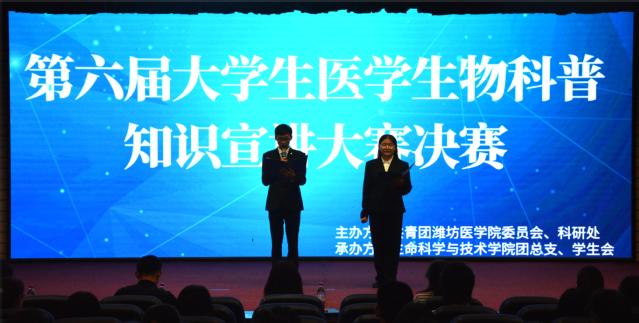 为深入推进学习贯彻习近平新时代中国特色社会主义思想主题教育,大力弘扬科学家精神,5月30日晚,由共青团潍坊医学院委员会、科研处主办,生命杏吧原创 团总支、学生会承办的第六届大学生医学生物科普知识宣讲大赛决赛在图书馆演播厅举行。校团委、生命杏吧原创 、麻醉学院的领导老师担任决赛评委,全校学生积极参加。