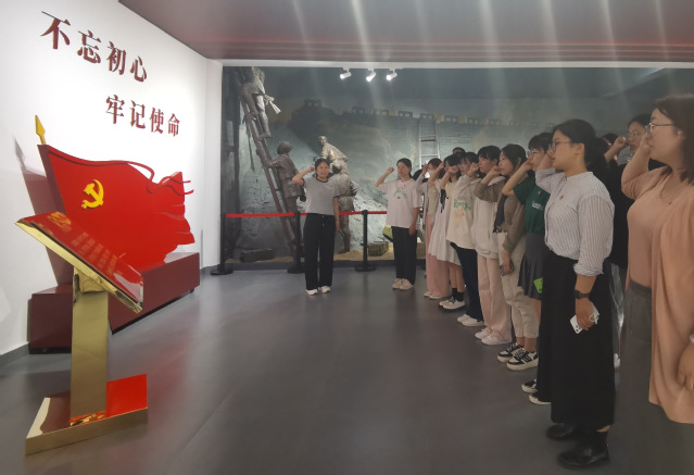 随后,在主展馆宣誓厅内,党员们重温入党誓词。面对鲜红的党旗,大家铿锵有力的宣誓声在大厅中回荡,激荡着永不磨灭的革命精神和奋力开创新时代的磅礴力量。
