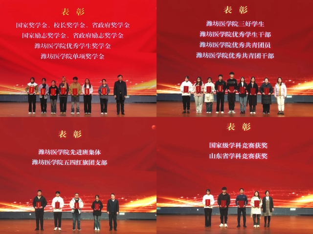 在凝聚力量、鼓舞人心的颁奖环节,与会领导分别为本年度表现优秀的“三好学生”和优秀学生干部等先进个人、学科竞赛中取得优异成绩的团体或个人、先进班集体和五四红旗团支部、各级各类奖学金获得者和学团活动中表现突出的个人进行了表彰并颁发证书,鼓励同学们在新的一年继续努力,再创辉煌。
