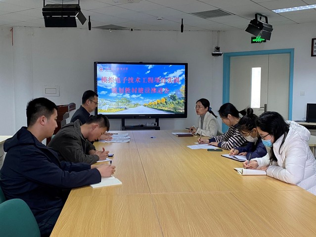 近日,生命杏吧原创 召开《模拟电子技术工程项目实训》校级规划教材建设项目推进会,学院党总支副书记王琳和教材全体编者参加,副院长王国辉主持会议。