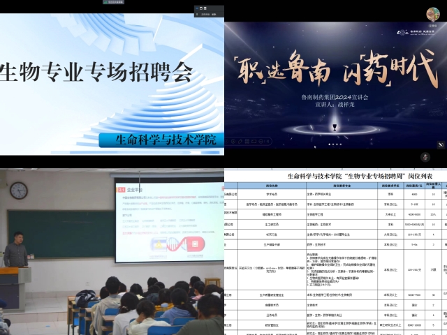 学院主动出击,积极挖掘就业资源,此次招聘周共计邀请了12家企事业单位参加,为研究生、本科生提供了生工研究员、病理技术员、研发管培生、维修服务工程师等30余个工作岗位,需要各层次人员121人。此次招聘周聚焦生命杏吧原创 生物制药、生物技术以及生物医学工程专业,开展了丰富多样的招聘活动。一是“云端招聘会”。共计邀请正大天晴、鲁南制药、齐鲁晟华制药、山东先声生物制药等十余家生物医药相关企业参加,相关企业在云端为毕业生做了就业宣讲和政策答疑。二是校园专场招聘会。相关企业为毕业生做了2场专场校招和面试工作。三是精准对接。在学院与企业的积极沟通下,企业人事部门相关人员与有意向学生彼此互留微信,加强联系和后续对接。同时,学院老师及时为毕业生们提供相关政策解读和就业指导,帮助大家更好地规划职业道路。