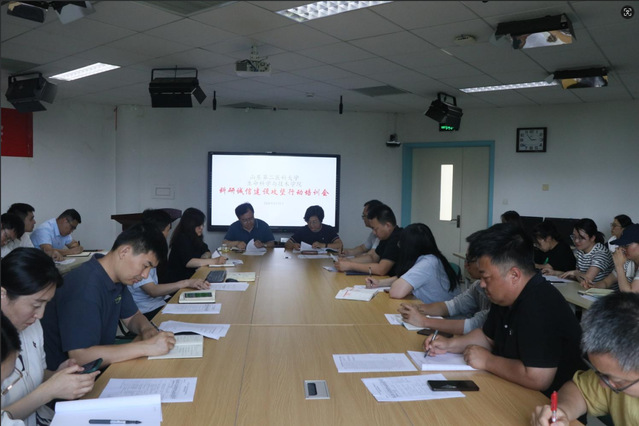 在敏行楼11442室召开科研诚信建设攻坚行动培训会,学院党总支书记张伟、院长高志芹、副院长王国辉、各教研室实验室主任、副主任和秘书参加。