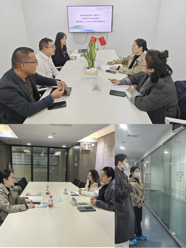 王琳一行先后前往济南金域医学检验中心有限公司、国药医工(山东)医学技术有限公司走访调研,实地参观了生产实验室,了解企业发展状况,就实习就业、校企合作事宜进行了深入洽谈。王琳介绍了学院的办学特色、专业建设、人才培养、科研创新和高质量就业等方面的情况,与各单位负责人就实习实训基地建设、企业用人需求、学生就业、专业课程设置、产学研融合等方面进行了探讨,并对共同探索人才培养新模式,培育更多优秀毕业生达成初步意向。在国药医工(山东)医学技术有限公司工作的2017届生物医学工程专业毕业生丁德平应邀参加相关座谈会,分享了自己的职业发展经验,为深化校企合作提供了宝贵的建议与参考。