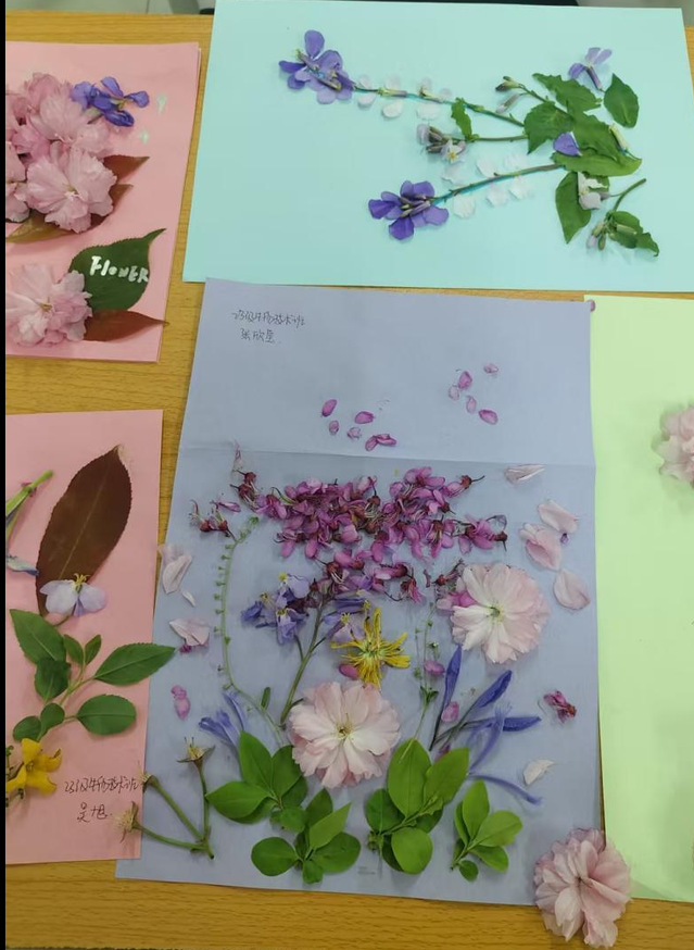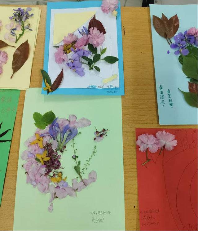 在拾花环节,大家漫步在百花丛中,精心挑选落花,每一朵被选中的落花都承载着创作者对美的独到见地。随后的作画过程中,现场气氛热烈而融洽,参与者们充分发挥自己的想象力和创造力,以花为墨,制作春天,将摘下的花朵巧妙地组合、粘贴在画纸上,一幅幅充满生机与创意的作品便跃然而生。有的以花朵拼出灵动的动物造型,有的用花瓣勾勒出梦幻的风景,还有的将花蕊作为点缀,展现出富有春日气息的艺术之美,在这个美好的季节里,共同感受自然与绘画融合的独特魅力。