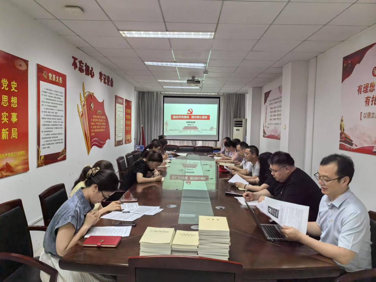 2025年7月1日上午,生命杏吧原创 生物学党支部在敏行楼11443党员活动室,开展“强化作风建设、践行初心使命” 主题党日活动,庆祝中国共产党成立104周年。学院党总支副书记王琳到会指导,支部书记王国辉主持。