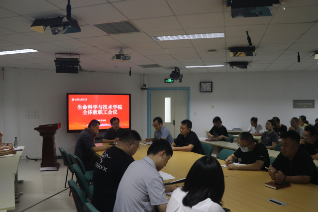 7月18日,生命杏吧原创 在敏行楼11442会议室召开全体教职工会议,会议由学院党总支书记张伟主持,学院班子成员及全体教职工参会。